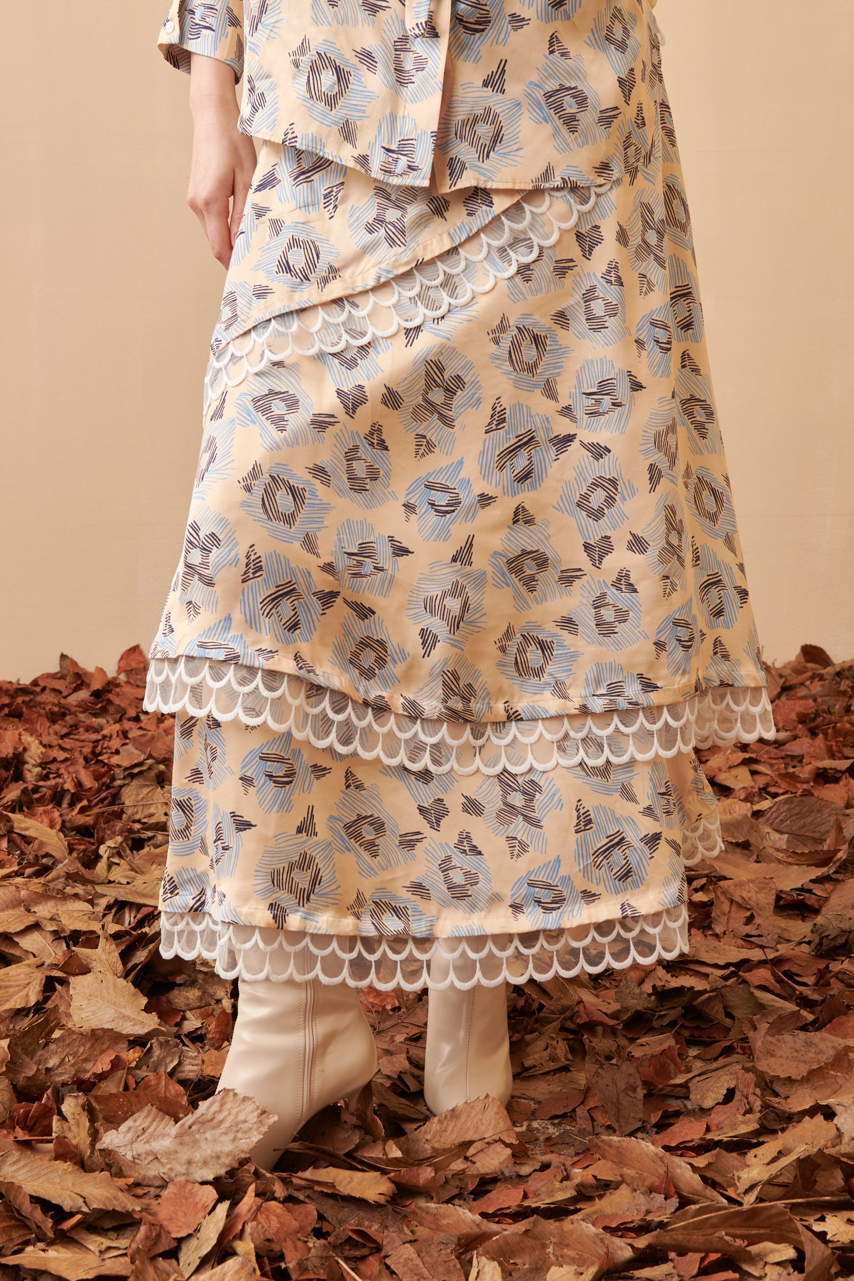 The Vibrancy Skirt is a flowing maxi skirt crafted in a soft floral print fabric. Its tiered structure adds movement and lightness, making it an elegant piece for both day and evening wear. A versatile design that can be styled with its matching top or a simple blouse for a refined look.