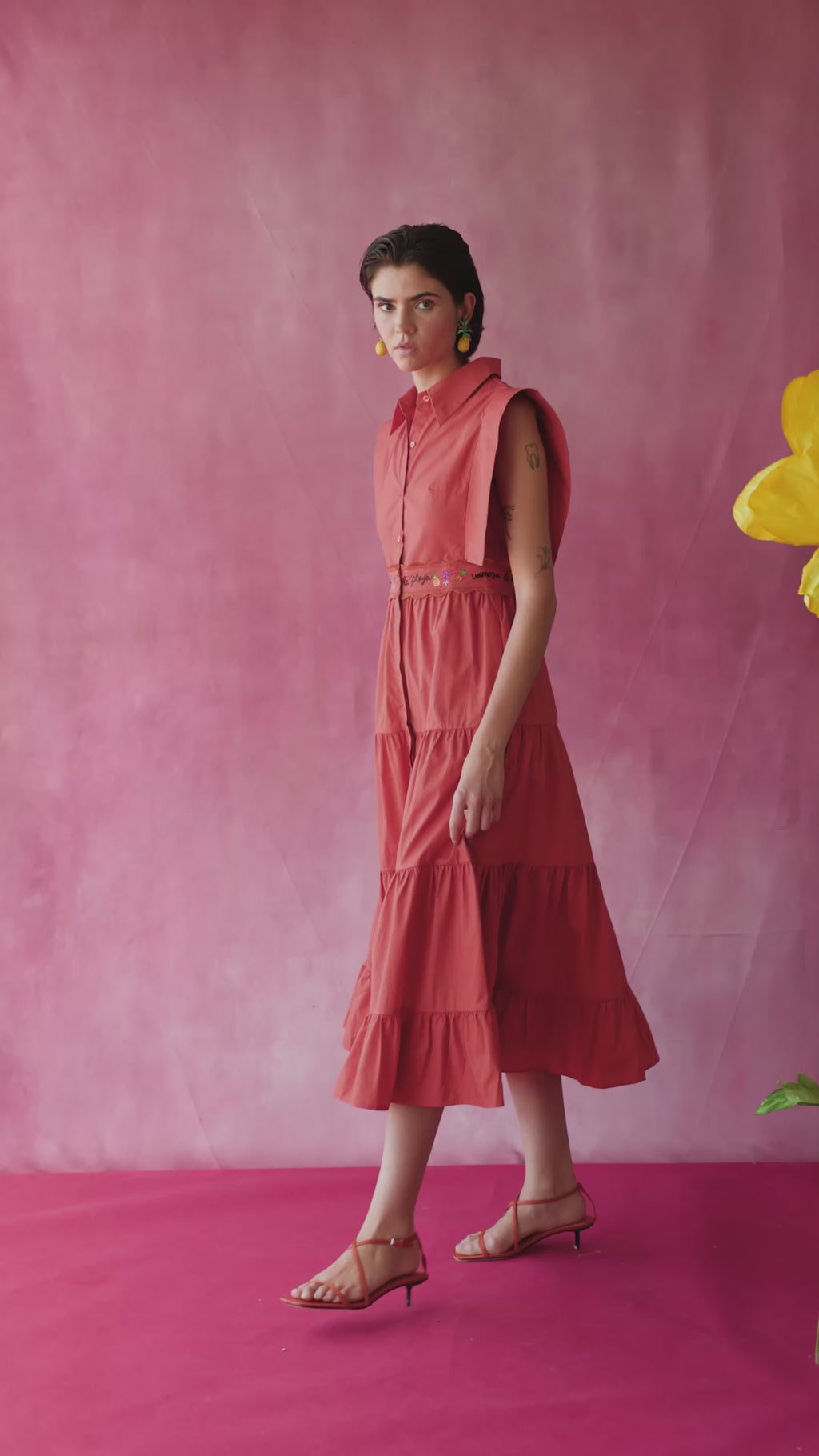 La silueta Lucero en un naranja vibrante. Vestido largo de algodón que combina estructura y movimiento de forma natural.