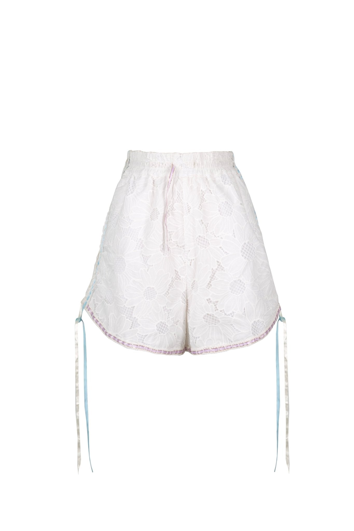 Mini pantalón corto de encaje, cómodo y fácil de combinar. La cintura elástica aporta un ajuste relajado, y los bolsillos laterales y trasero lo hacen práctico para el día a día.