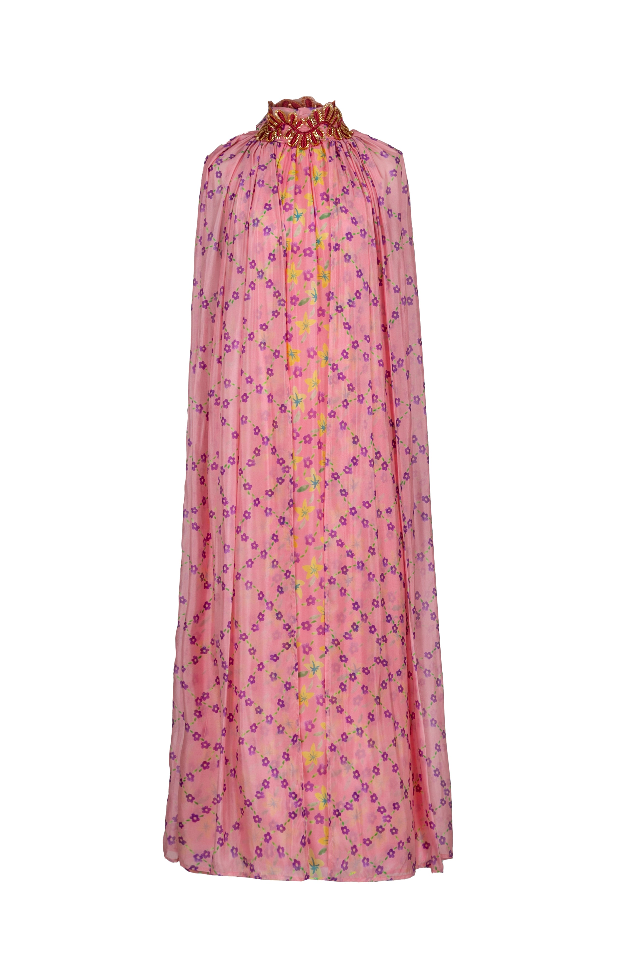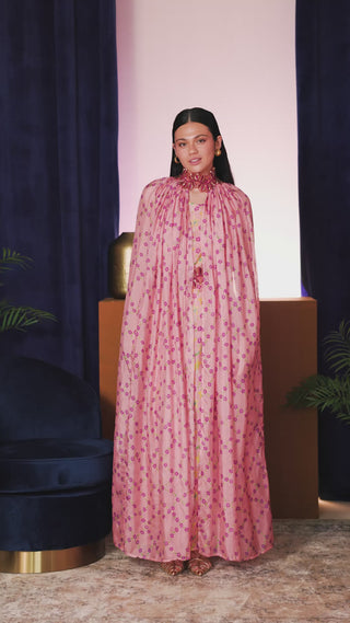 Radiante y etéreo, el vestido Crescent captura la magia de la luz y el movimiento. Confeccionado con capas de gasa transparente estampada con motivos florales, el vestido cae con elegancia sobre una base amarilla fluida. Sus espectaculares mangas y la cintura ceñida crean una silueta de ensueño. Perfecto para bodas al aire libre, veladas al atardecer o cualquier momento mágico.