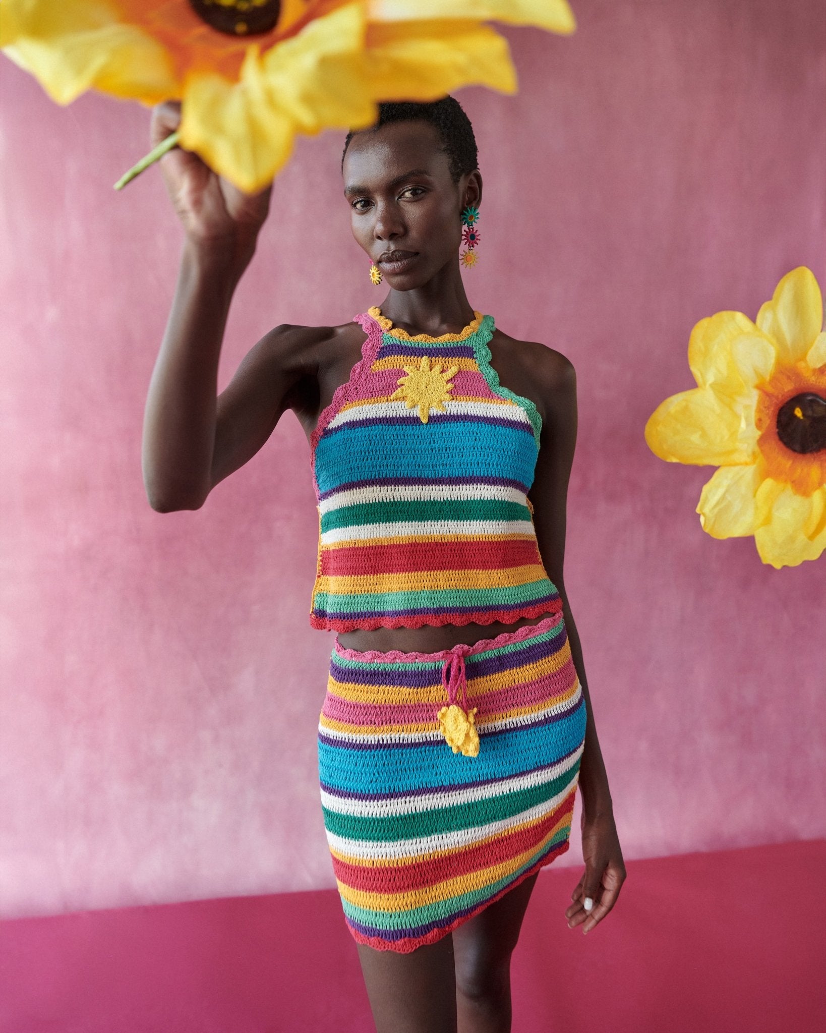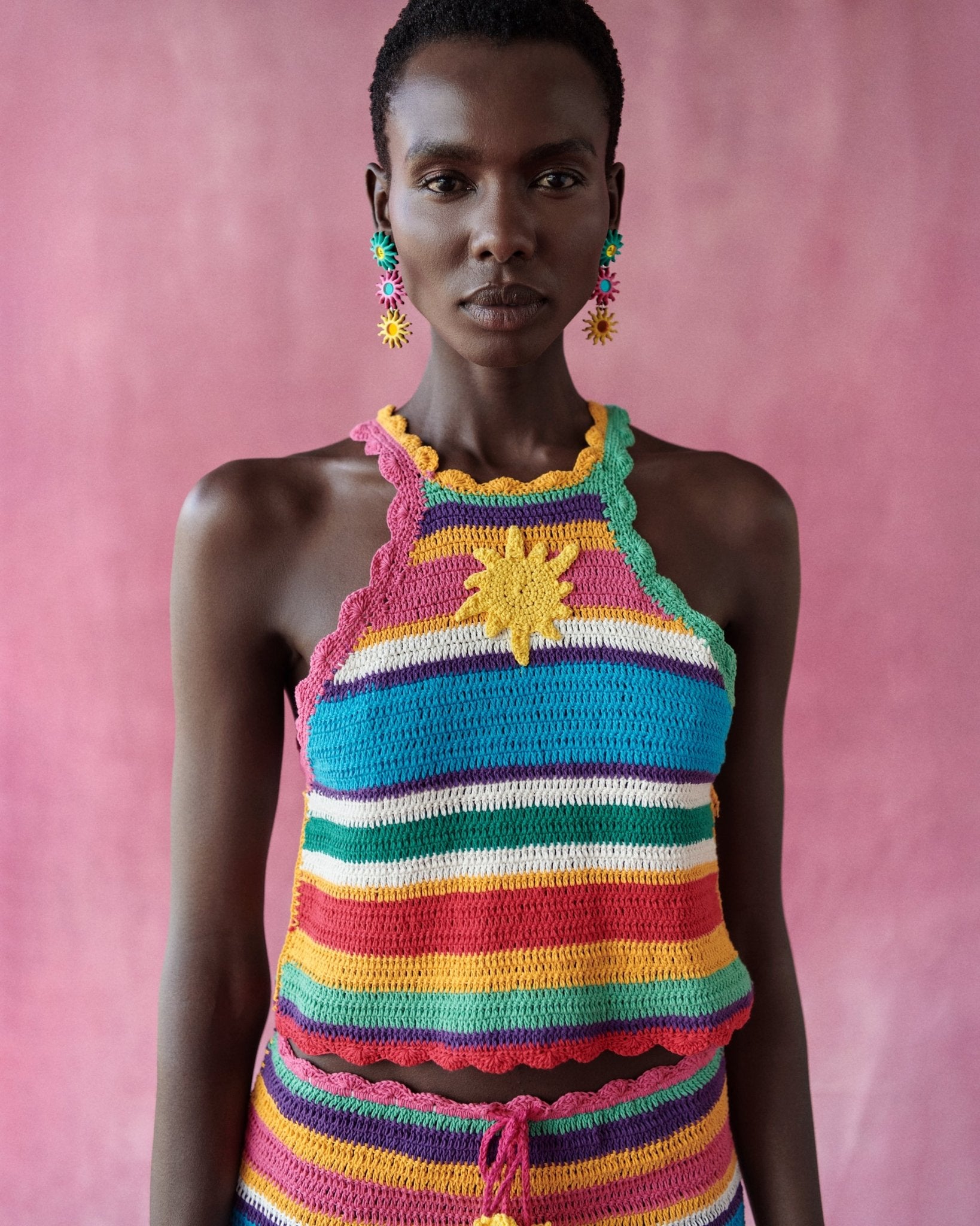 Top de crochet con cuello halter que resalta la parte superior de forma favorecedora y con un toque moderno.