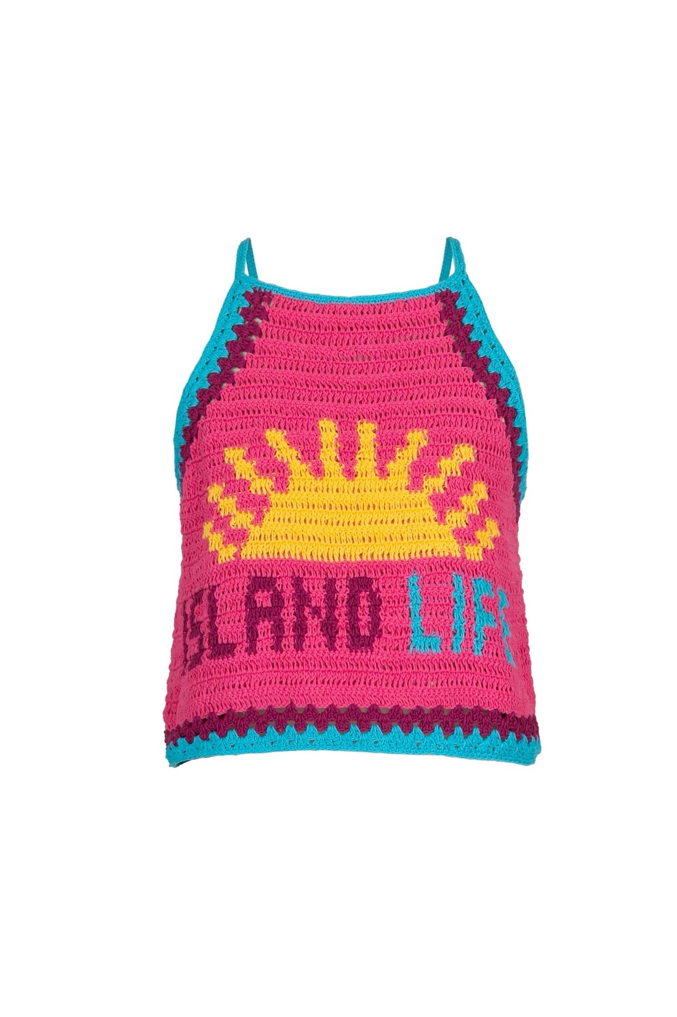 Un top de crochet con cuello halter diseñado para resaltar los hombros con una silueta limpia y favorecedora.