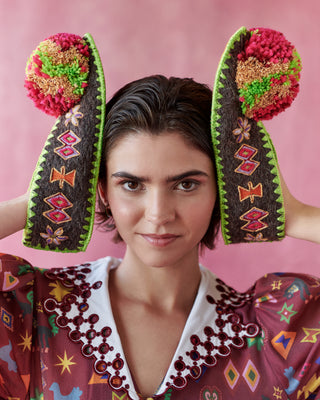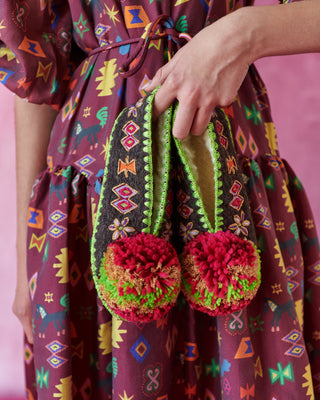 A partnership born from a shared love of color, craftsmanship, and storytelling. Together, we’ve reimagined the iconic Greek Tsarouchia slipper, through the playful lens of Celia B’s bold patterns and Give A Pon’s artisanal expertise.